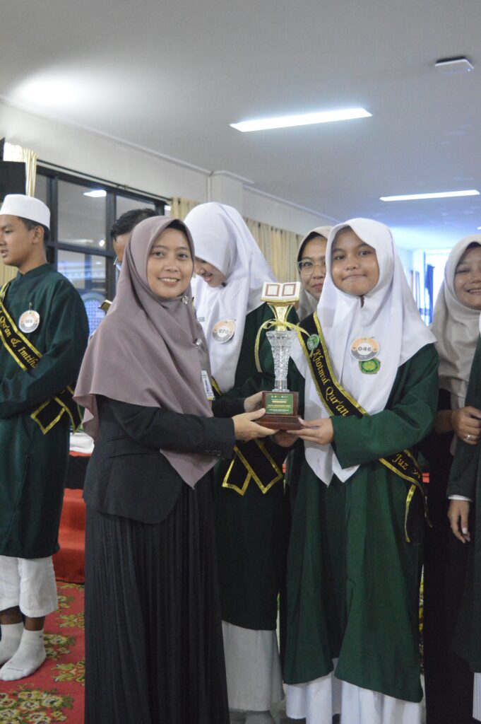 - Predikat Tertinggi (Mumtaz Juz 5) berhasil diraih oleh Azlyn Zuyyina Arsy (Kelas 7D) dan Muhammad Yusuf Emir (Kelas 9B).