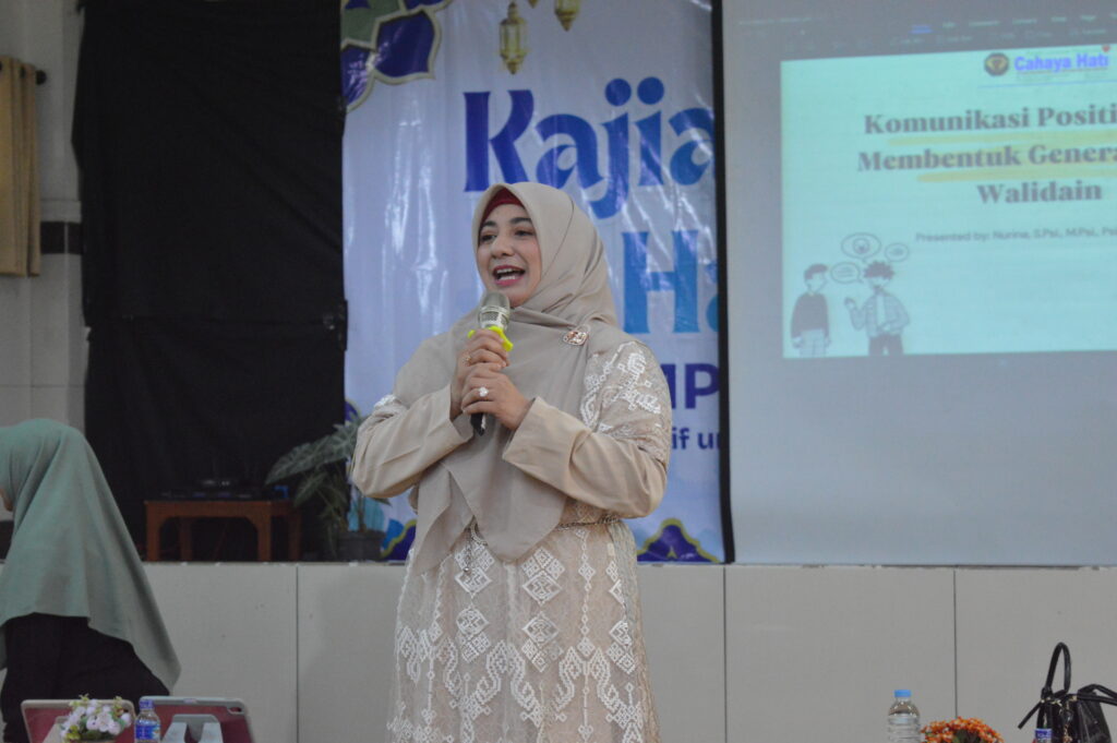 Puncak acara diisi oleh pemaparan dari pakar psikologi, Ibu Nurina, S.Psi., M.Psi., Psikolog., CHA., CGA. Dalam presentasi yang interaktif dan menarik, beliau menekankan bahwa komunikasi yang sehat adalah kunci utama untuk membantu anak mengamalkan birrul walidain (berbakti kepada orang tua).